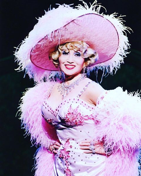 投稿に添えられた写真は、2002年に上演された『ブロンドに首たっけ』のときのものらしく、「グラマラスなボディーは特殊メイクの江川悦子さんにお手伝いいただきました」と説明した。